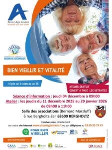 La séance d’information est proposée le jeudi 4 décembre à 9h00 à la salle des associations de Bergholtz et est suivie de 6 séances.